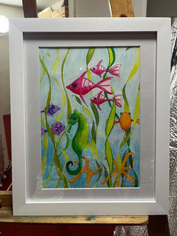 ![]() Flowingoil on canvas 1m x 45cm | ![]() Three Little fishinks on Canvas 40x40cm Auctioned for Variety Childrens Charity | ![]() A Singular Fish [11]A3 framed oil on Canvas |